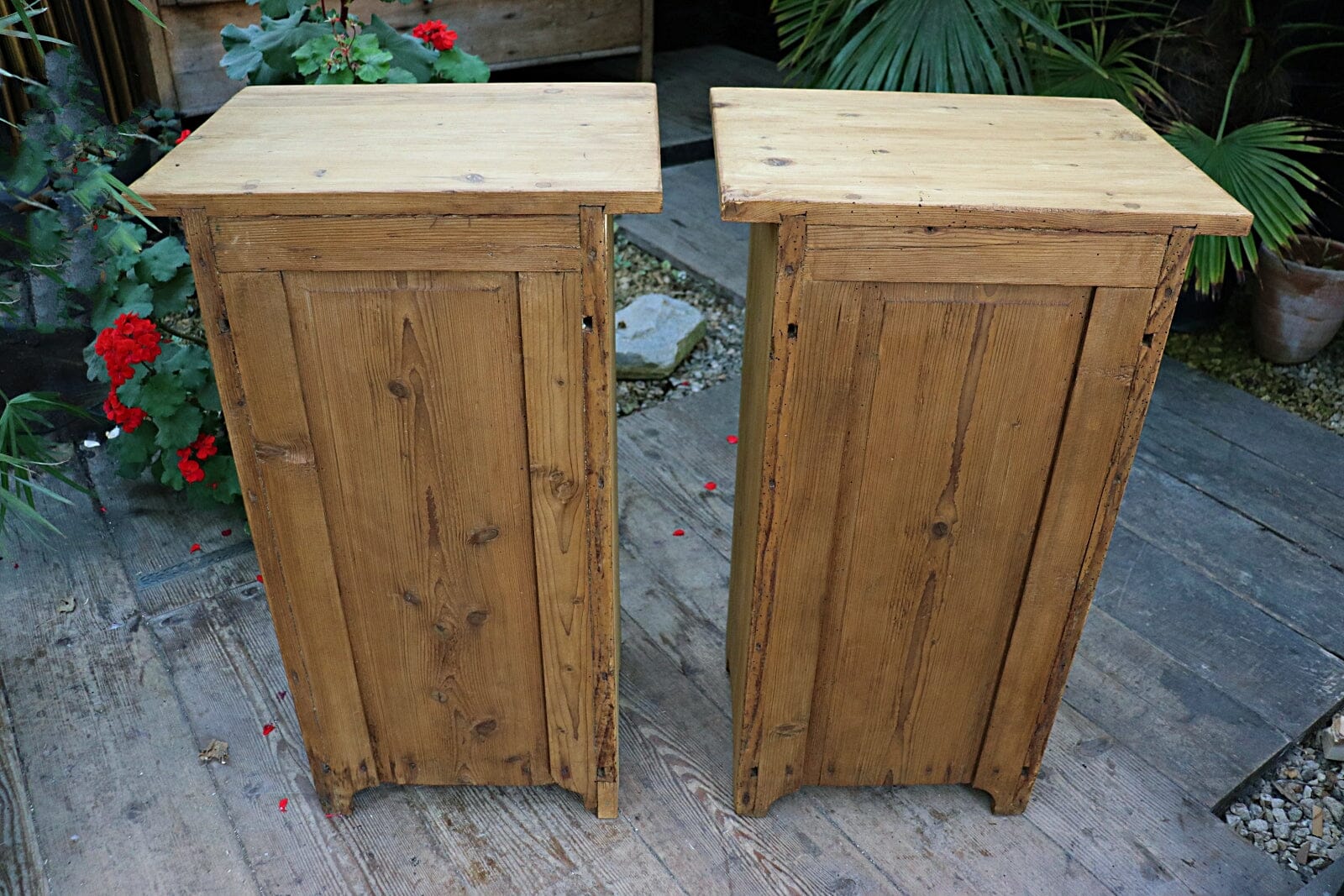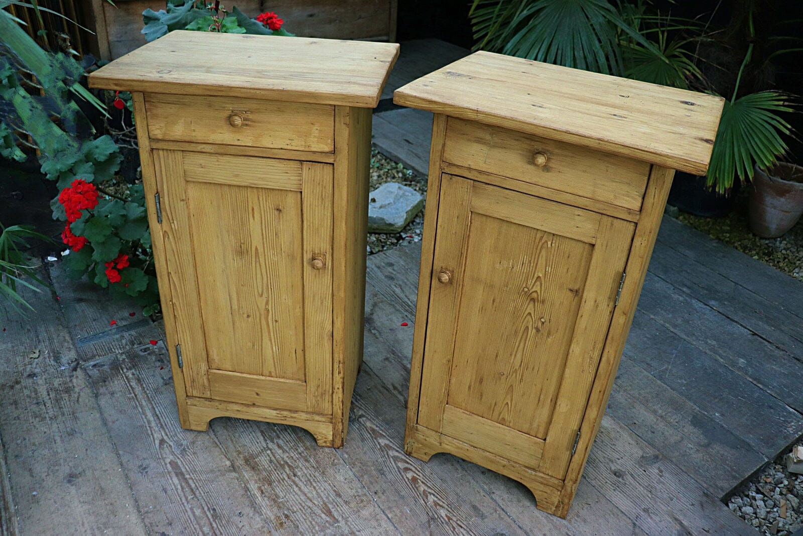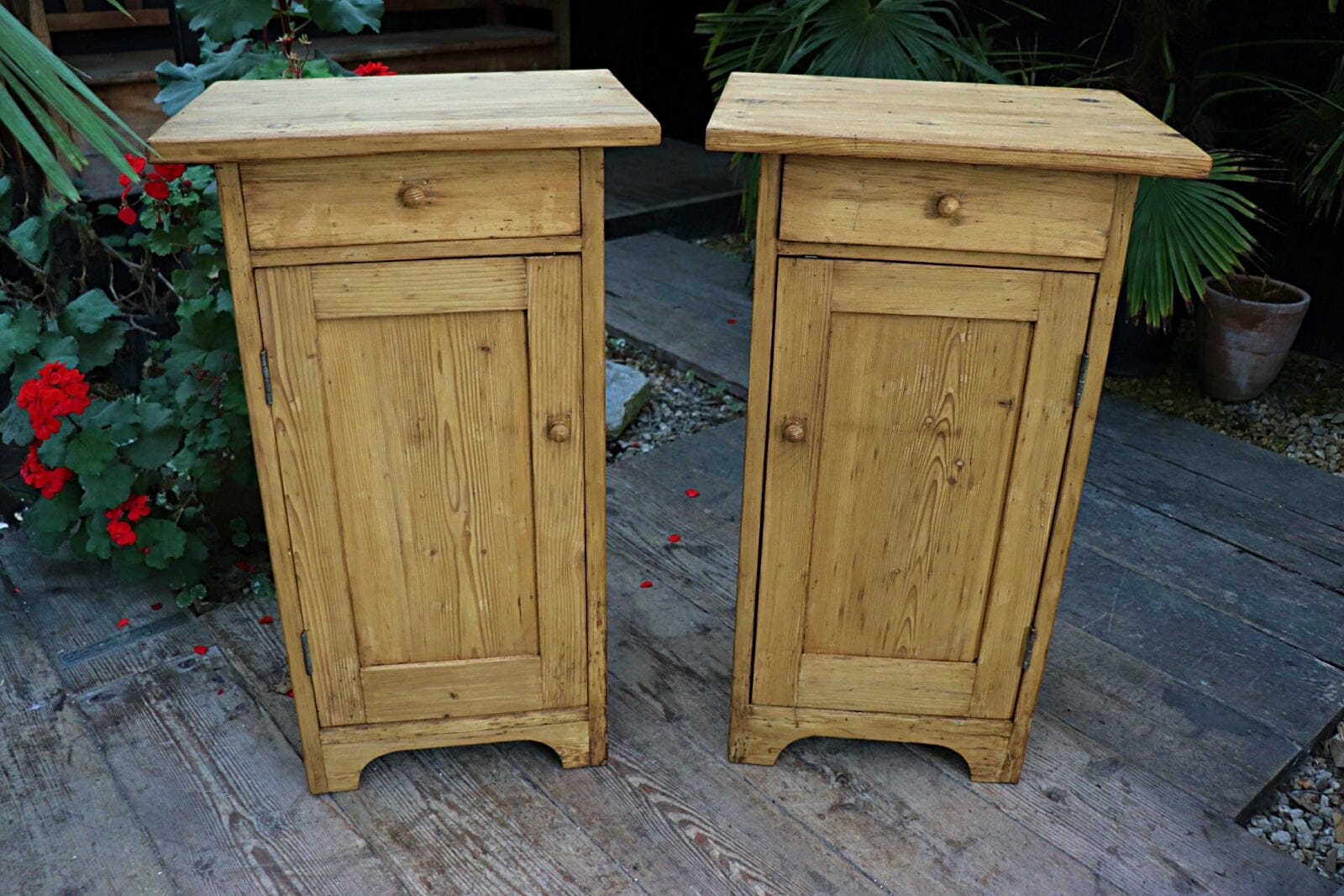 A gorgeous and chunky pair of original restored old pine bedside cabinets with removable shelves. Early 20th century and continental in origin, now hand waxed with a wonderful old pine colour 🤩