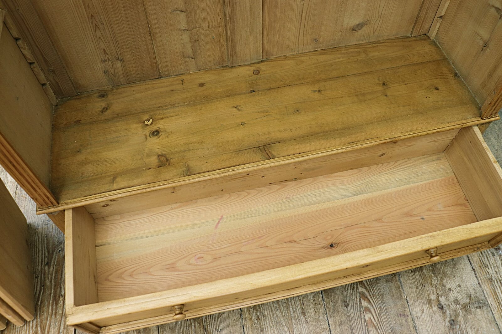 Enough rustic charm from the old timbers, some old worm but the old pine has been dipped so no worries there. As with everything we sell, prepared ready for immediate use with a good ready to go feel. Superb! 😀
