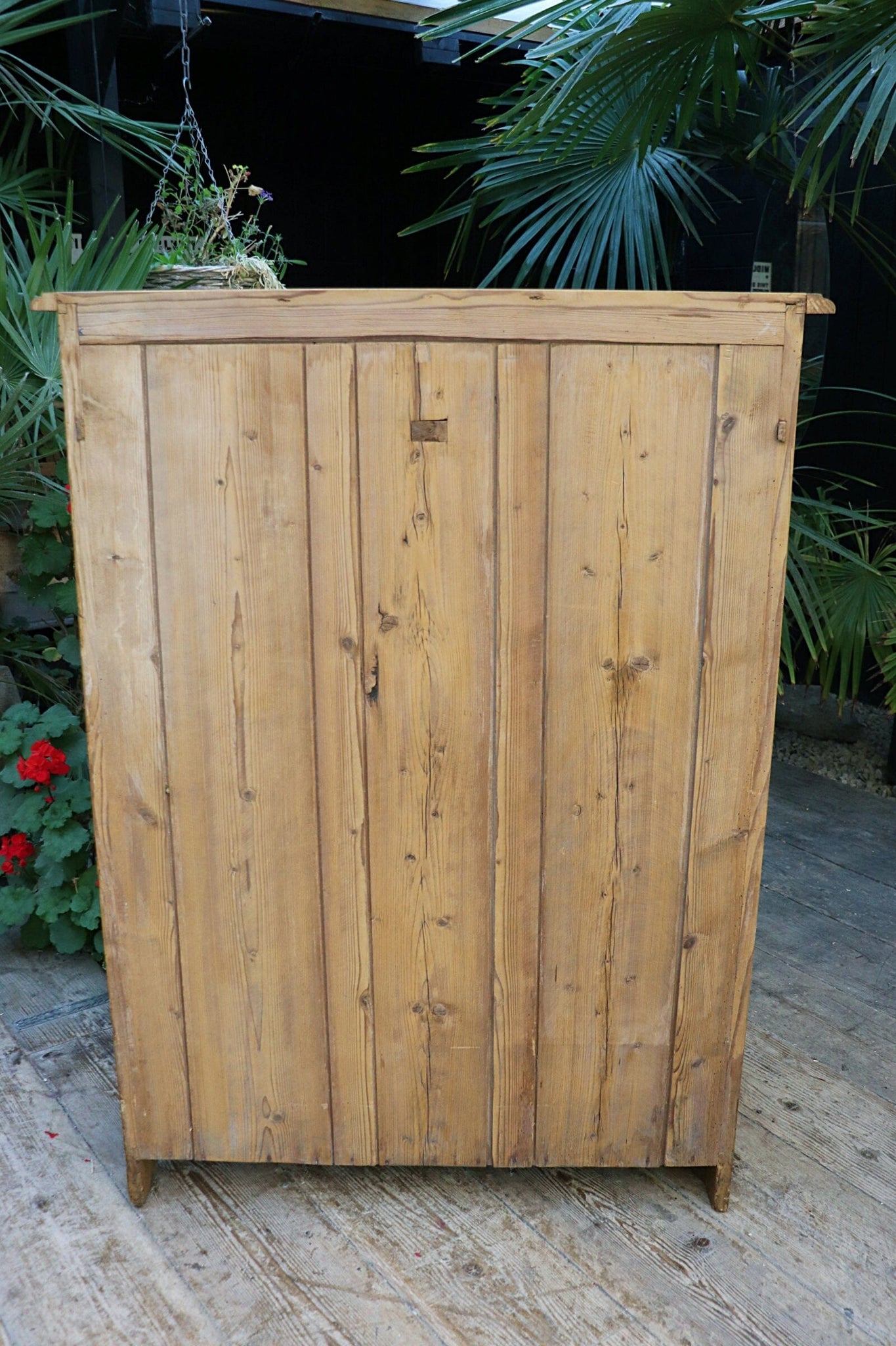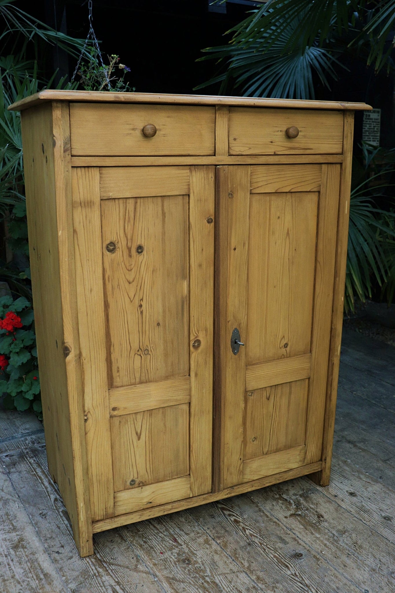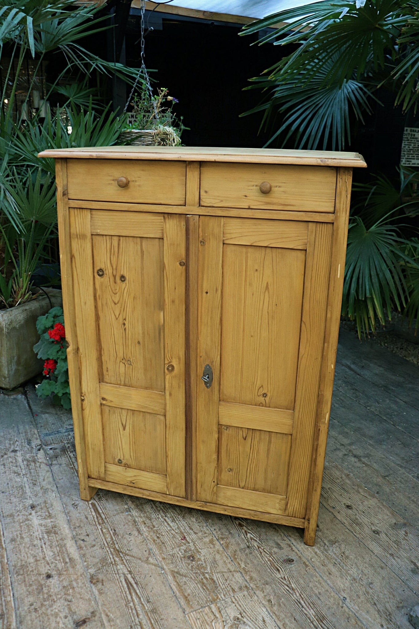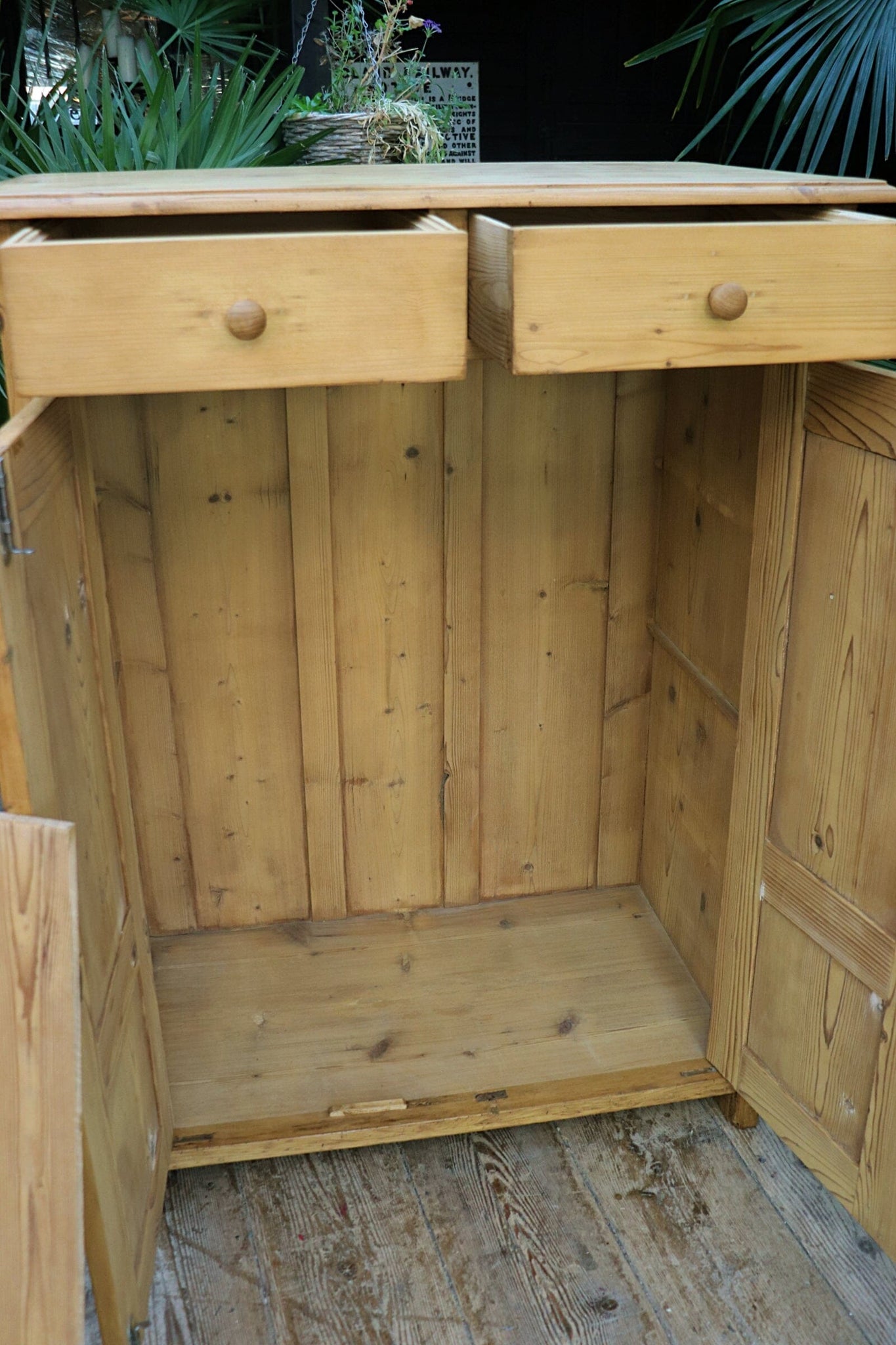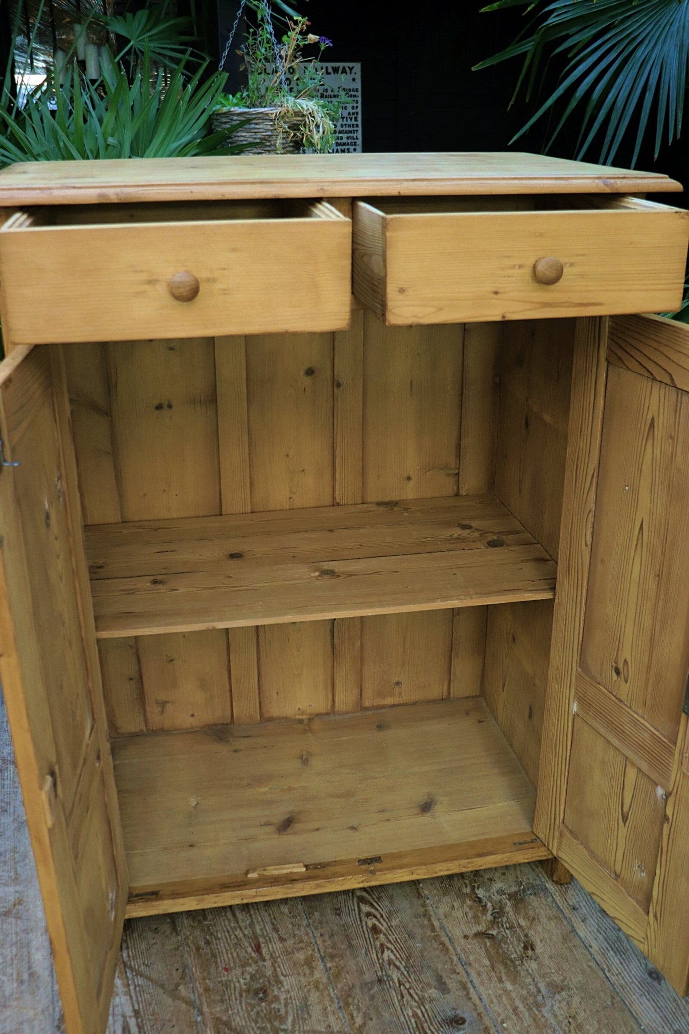 Enough rustic charm for the old pine fans - minor battle scars, old worm 'character' (long dead and dealt with during stripping) etc. etc. Sympathetically restored with a new lock, key and bolts. Ready for immediate use with good running drawers and smoothly closing doors, combined with an all round sturdy feel. Fabulous! 😀